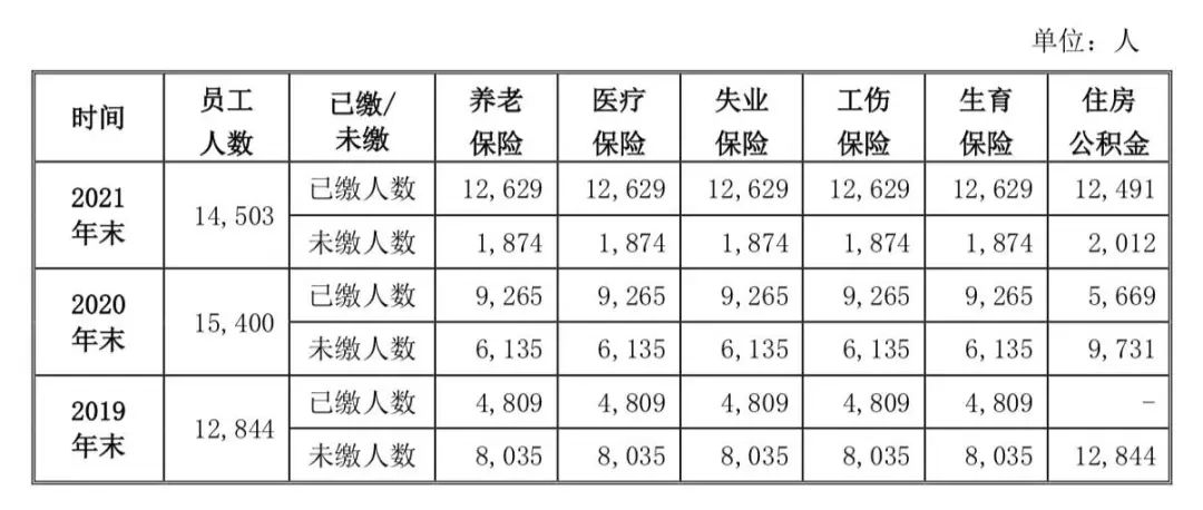 數(shù)千名員工未繳納五險一金
