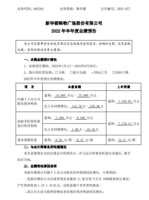 聯(lián)商快訊:7月11日晚間,新華都公布了2022年半年度業(yè)績預告。