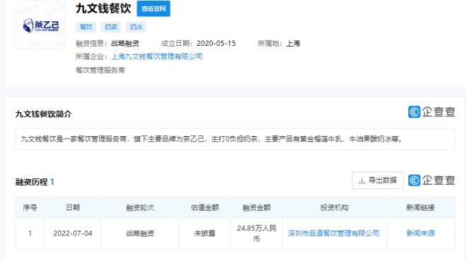 據(jù)悉,深圳市品道餐飲管理有限公司正是奈雪的茶的母公司,上海九文錢餐飲管理有限公司則是茶乙己的母公司。
