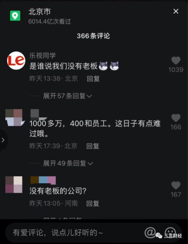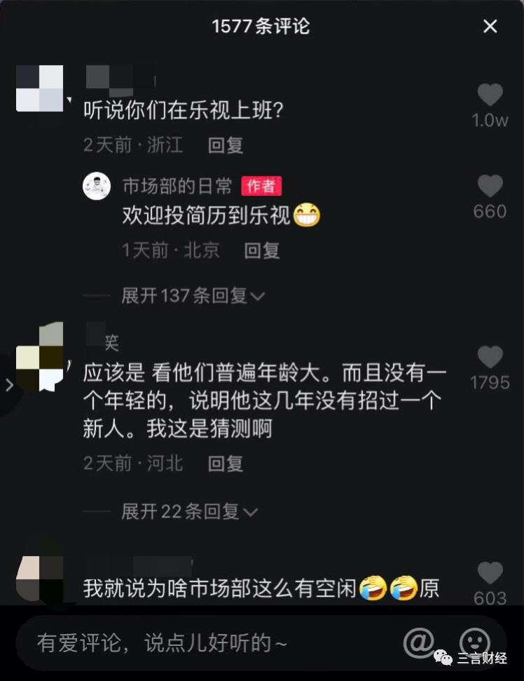 有網(wǎng)友在該賬號(hào)評(píng)論區(qū)留言:“聽(tīng)說(shuō)你們?cè)跇?lè)視上班?”,該賬號(hào)回復(fù):歡迎投簡(jiǎn)歷到樂(lè)視。