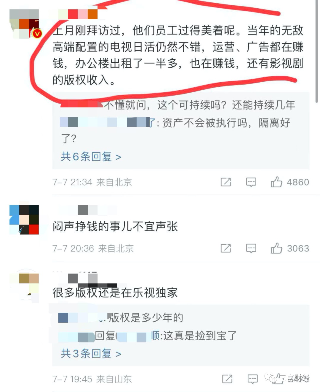 有網(wǎng)友表示,自己上個(gè)月去拜訪過(guò)樂(lè)視,他們員工過(guò)得很好,高端配置電視日貨仍然不錯(cuò),運(yùn)營(yíng)、廣告都在賺錢,辦公樓出租了一半多,還有影視劇版權(quán)收入。