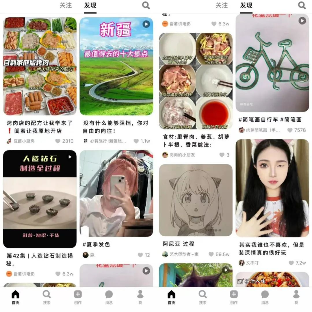 在剔除“購(gòu)物”版塊后,你很難分辨可頌與小紅書(shū)的差異。這形成了評(píng)論的兩極分化,喜愛(ài)者視其為抖音的簡(jiǎn)潔、唯美版;反對(duì)者稱之為換皮小紅書(shū),看不到一款戰(zhàn)略級(jí)競(jìng)品應(yīng)有的差異價(jià)值。
