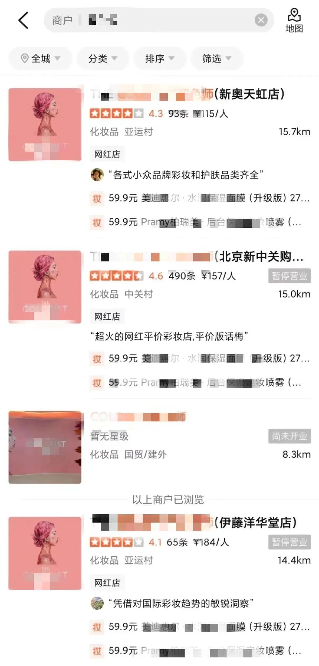燃財(cái)經(jīng)在大眾點(diǎn)評搜索“調(diào)色師”發(fā)現(xiàn),THE COLORIST調(diào)色師目前在北京的大部分門店顯示暫停營業(yè)。