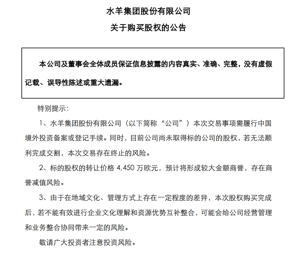 值得關注的是,公告還表示,標的股權(quán)的轉(zhuǎn)讓價格3.03億元,預計將形成較大金額商譽,存在商譽減值風險。