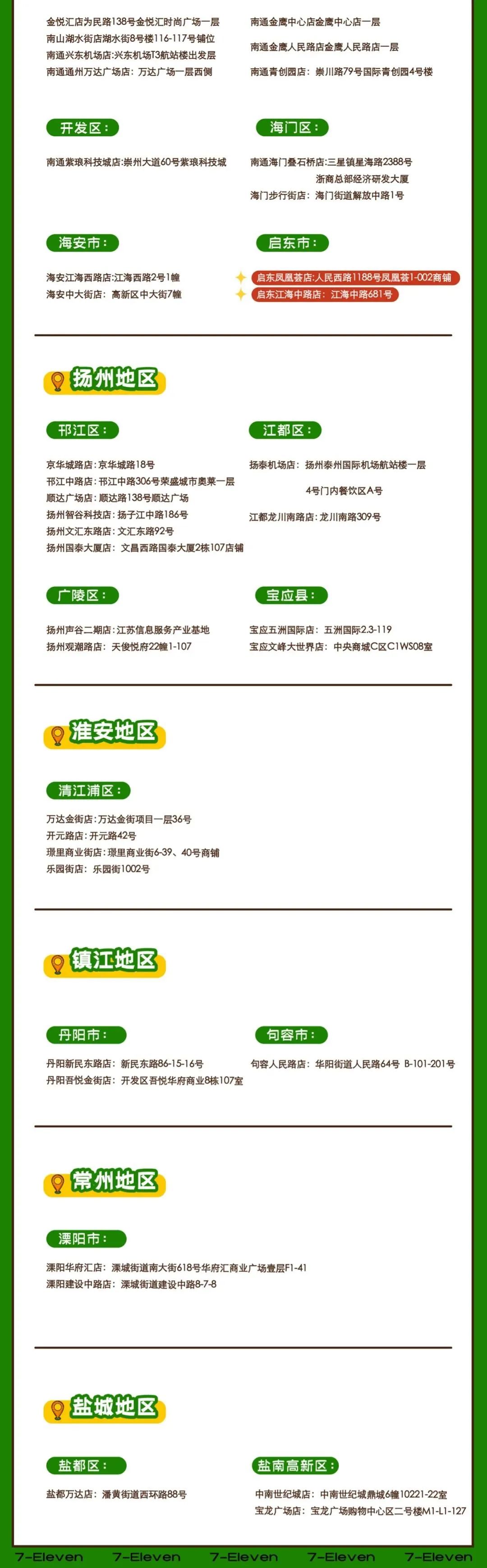 鹽城地區(qū)三家新店均為24小時(shí)營(yíng)業(yè)店鋪。開業(yè)活動(dòng)期間,將會(huì)推出“元7仔超值福袋”、 “部分鮮食8折嘗鮮”、“7-Coffee第二杯半價(jià)” 等誠(chéng)意活動(dòng)回饋鹽城市民的厚愛,同時(shí)還有高人氣 “元7家族”IP主題店會(huì)與消費(fèi)者見面。