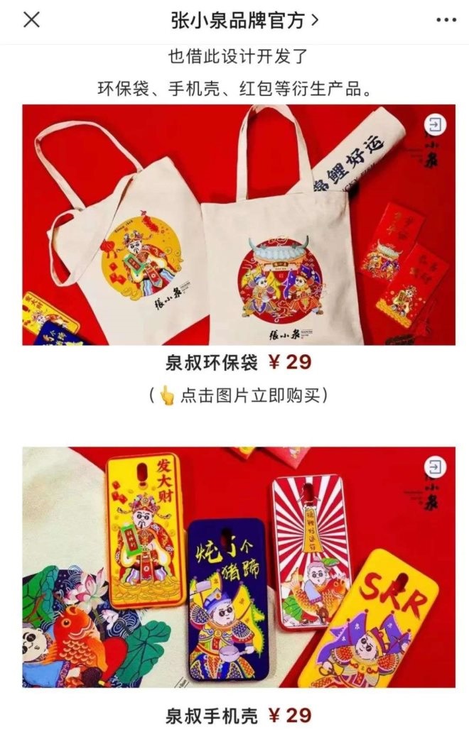 2019年,張小泉使用“泉叔”IP形象設(shè)計了手機(jī)殼、帆布包等一系列文創(chuàng)產(chǎn)品,借著春節(jié)的節(jié)點(diǎn)推出,進(jìn)一步拉攏年輕人。