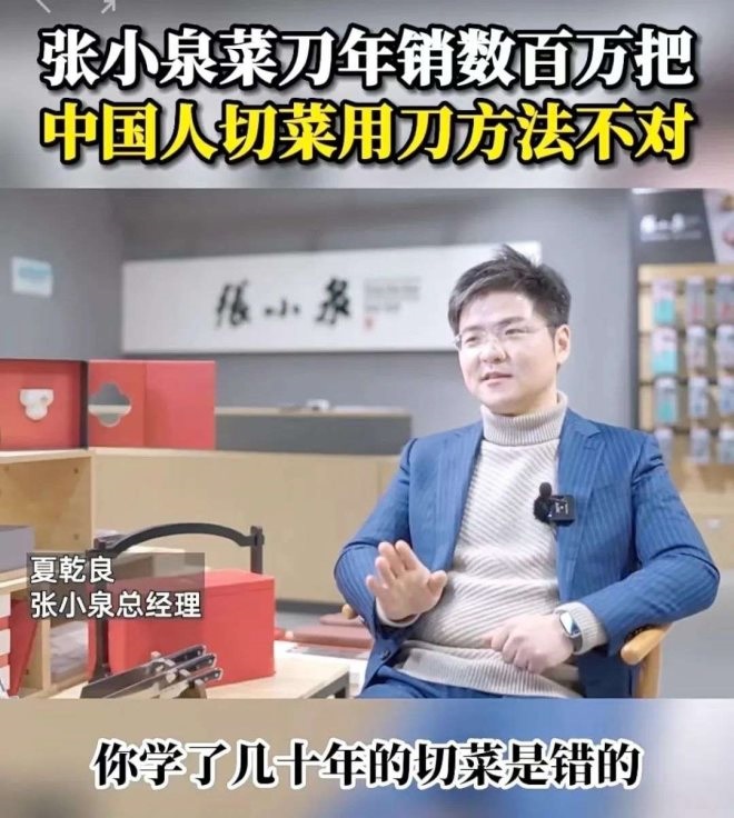 今年3月,張小泉董事兼總經(jīng)理夏乾良在接受媒體采訪時說:“你學(xué)了幾十年的切菜是錯的,所有的米其林廚師都不是這樣切的。為什么米其林廚師切的肉片更薄,切的黃瓜片更透明,是因為他前面有個支點(diǎn)。”