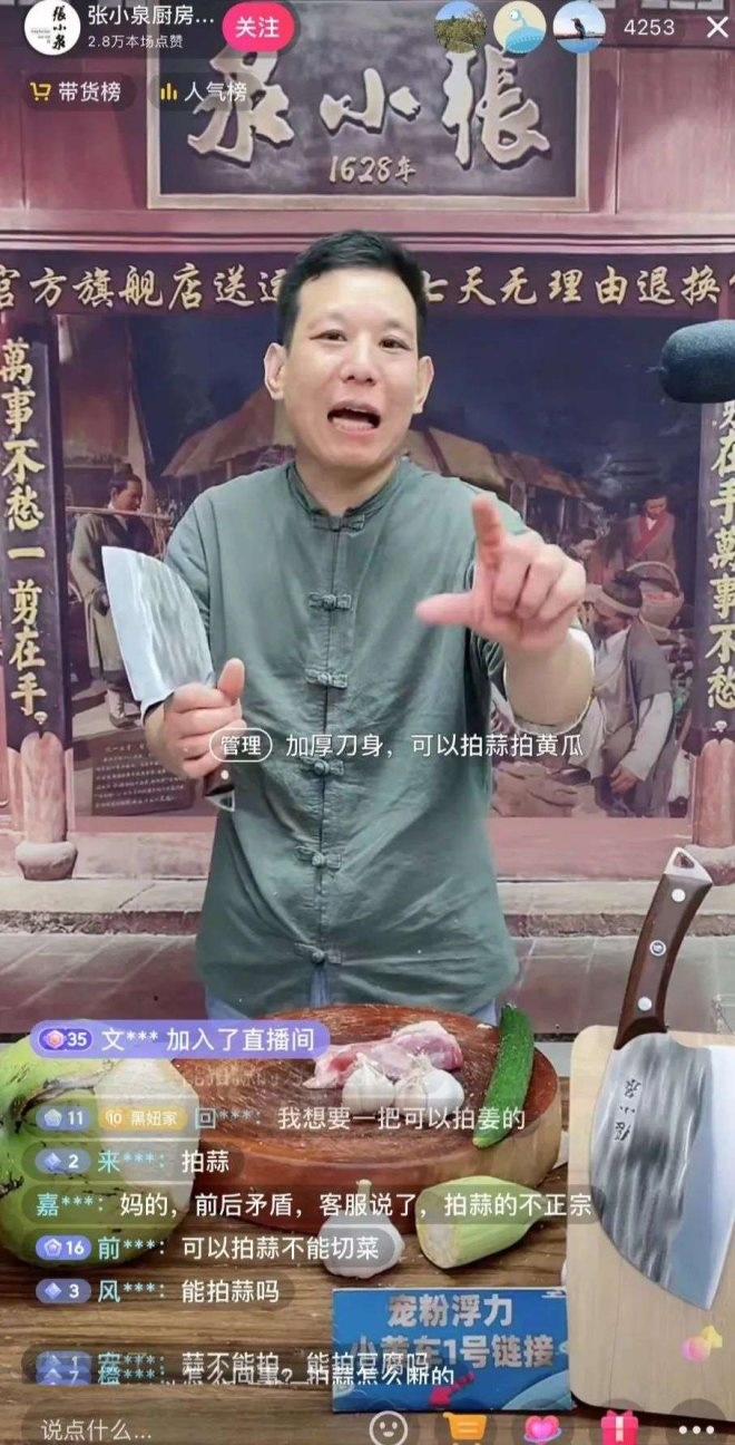 隨即引來一片彈幕的調(diào)侃:“客服說了,拍蒜的不正宗。”“嘴上說的和實際賣的不是同一個牌子的刀嗎?”“能拍姜拍蒜的刀我們都不要!
