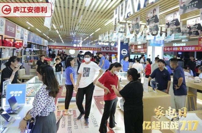 政府政策一實施,市場活力被激發(fā),消費潛力被釋放,有效促進(jìn)了消費回補。安德利一年一度家電日正趕上這波紅利,全員營銷、全員宣傳,充分發(fā)揮政府消費券的拉動作用,極大地提升了今年家電日預(yù)售效果,貨源儲備額達(dá)1.45億元!巴蠲老M·廬江GO”消費補貼是消費者付款直減,感受直接,讓利實在,政府消費券疊加家電日讓利,乘數(shù)效應(yīng)顯現(xiàn),刺激了消費者的購買欲,助燃了家電終端零售市場。