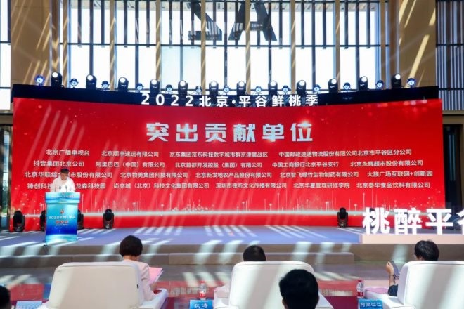 7月15日,2022北京·平谷鮮桃季啟動(dòng)儀式暨新聞發(fā)布會(huì)在京召開(kāi)。平谷區(qū)委副書(shū)記、代區(qū)長(zhǎng)狄濤,區(qū)委宣傳部長(zhǎng)劉建華,區(qū)委常委、副區(qū)長(zhǎng)唐朝輝,以及市商務(wù)局、文化和旅游局、交通委、園林綠化局等領(lǐng)導(dǎo)出席,授予物美、阿里巴巴、京東、抖音、順豐等企業(yè)“2021年度平谷區(qū)大桃銷(xiāo)售突出貢獻(xiàn)獎(jiǎng)”,物美集團(tuán)黨委書(shū)記許麗娜上臺(tái)領(lǐng)獎(jiǎng)并發(fā)言。