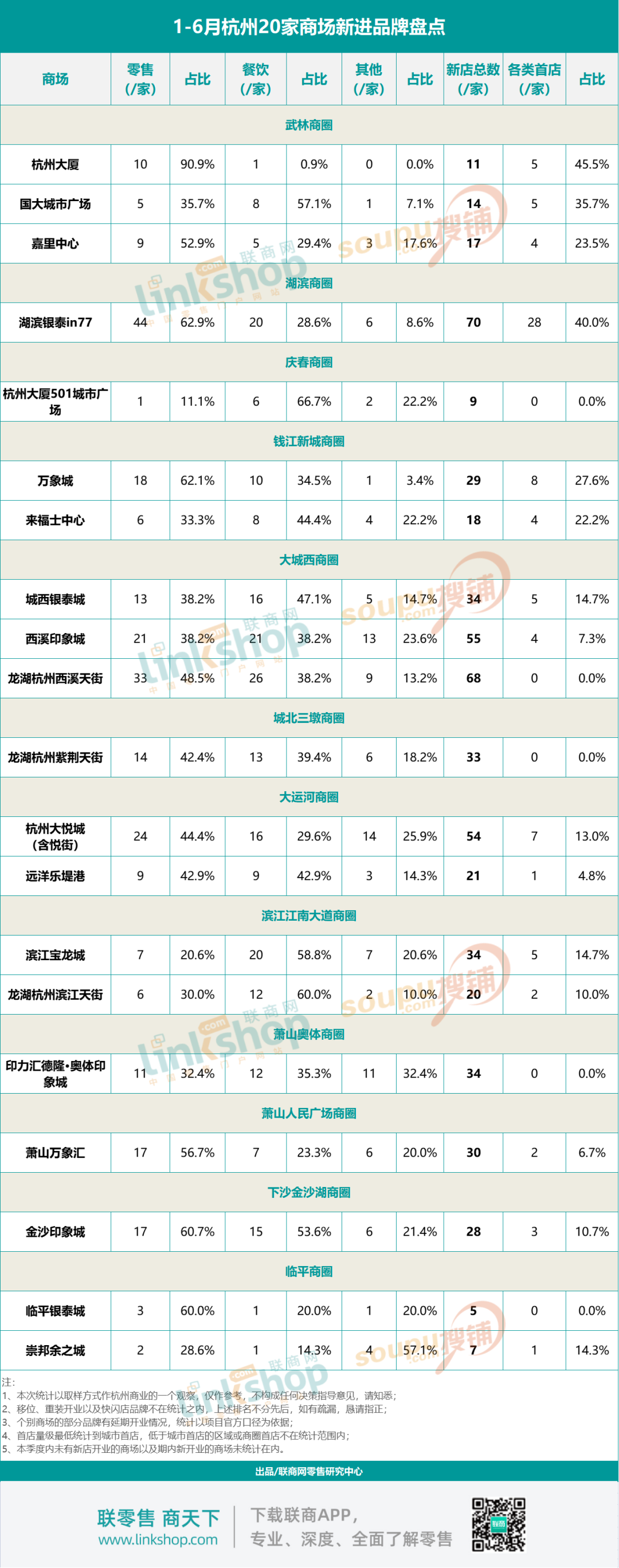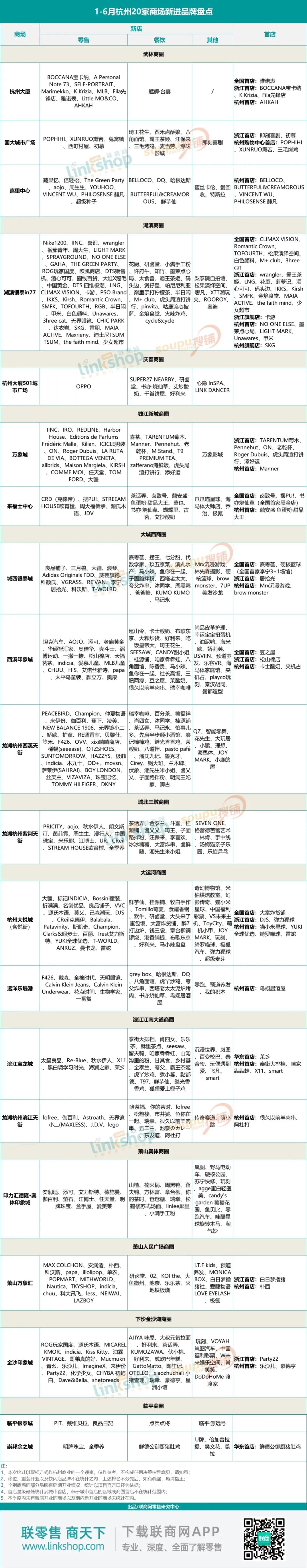 附:1-6月杭州20大商場(chǎng)新店&首店統(tǒng)計(jì)