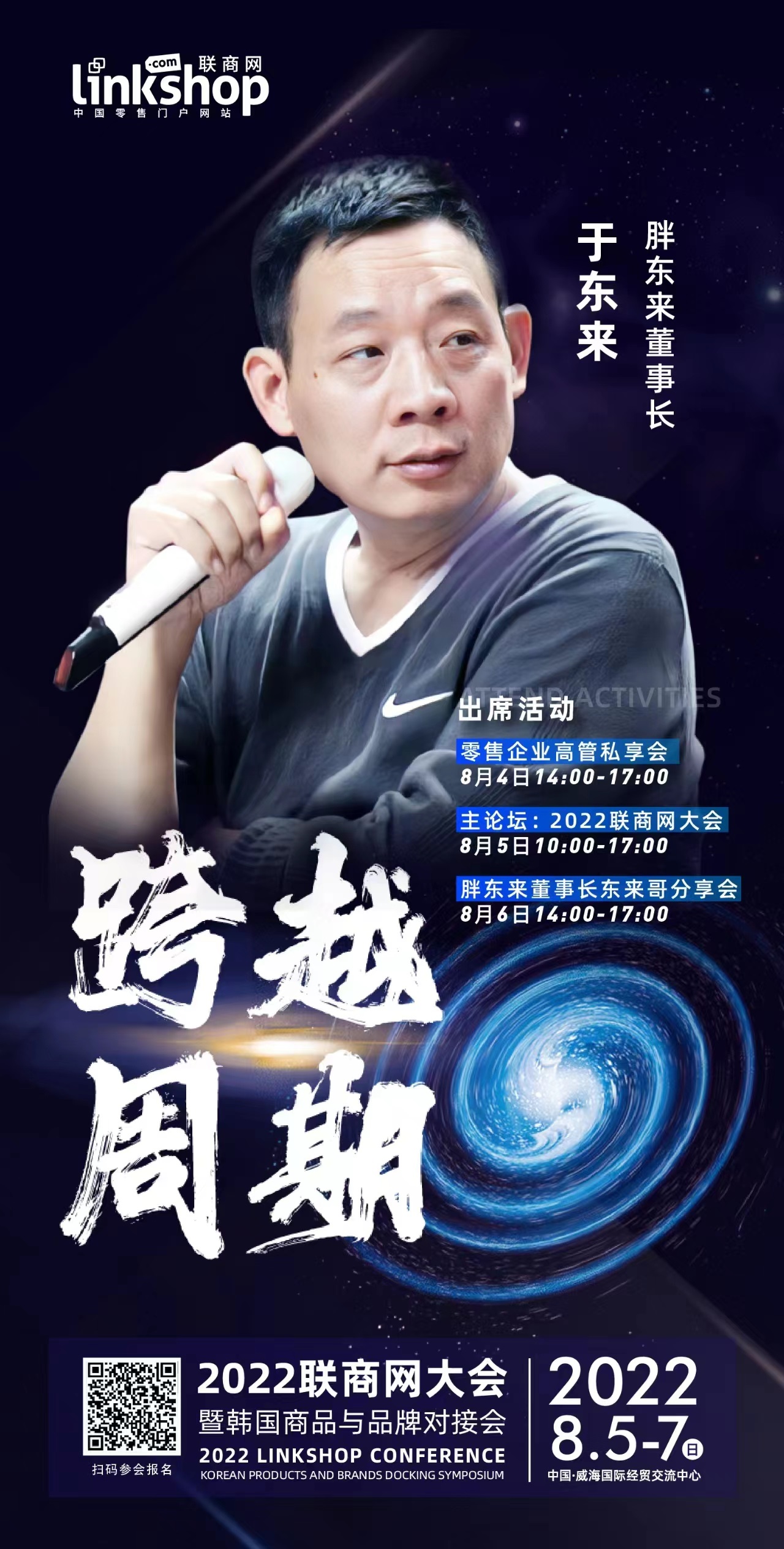 8月5日-7日,于東來(lái)確認(rèn)出席2022聯(lián)商網(wǎng)大會(huì),并將發(fā)表主題演講。此外,于東來(lái)還將參加零售企業(yè)高管私享會(huì)和胖東來(lái)專(zhuān)場(chǎng)分享會(huì),敬請(qǐng)期待!