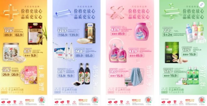 天虹自有品牌由四大品牌矩陣組成,天優(yōu)聚焦包裝食品,天口味聚焦生鮮熟食等短保鮮品,菲爾芙聚焦日用百貨,奧百思則聚焦寵物食品和用品……四大品牌致力于全方位滿足中產(chǎn)階級家庭日常生活所需,持續(xù)為顧客提供極致性價比的好商品。