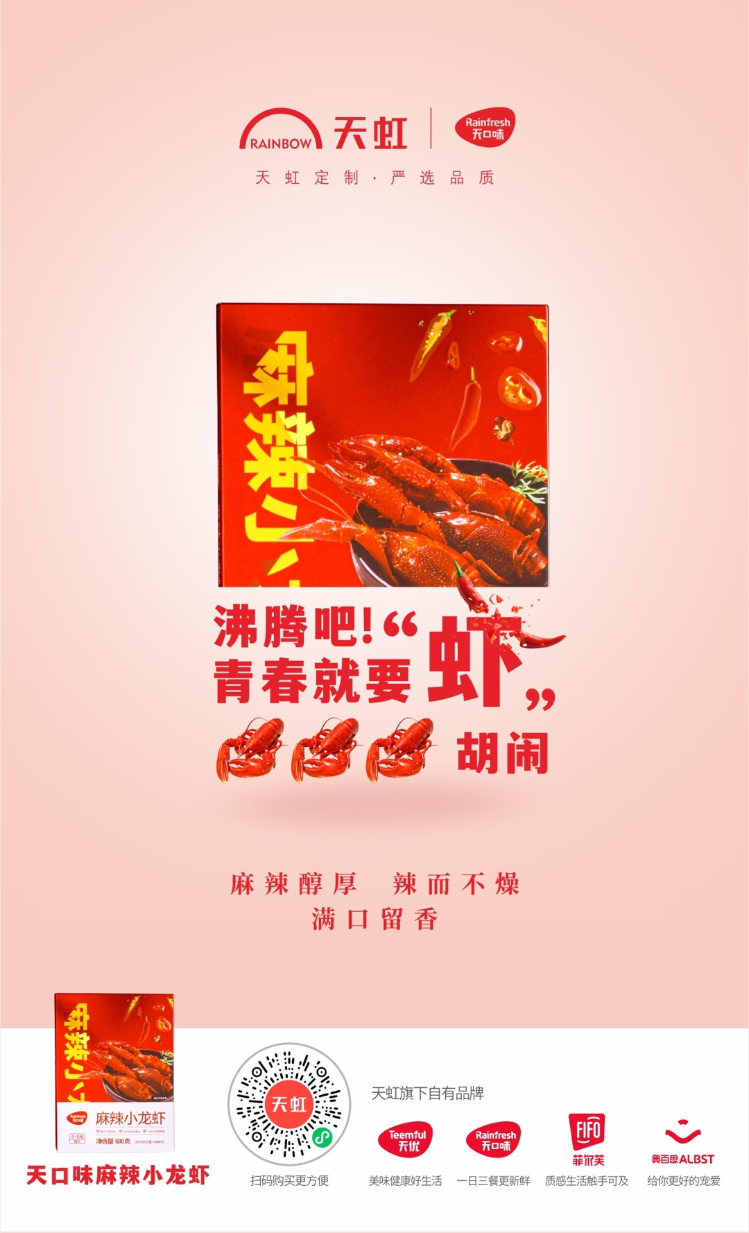 天口味的產(chǎn)品聚焦生鮮和熟食品類,對鮮度要求極高。夏季里熱賣的王牌單品——天口味小龍蝦,其小龍蝦養(yǎng)殖基地獲得全球水產(chǎn)養(yǎng)殖聯(lián)盟的BAP認證,天虹通過采用-196℃液氮冷凍鎖鮮技術(shù),讓每一只蝦口感如活蝦般鮮嫩Q彈。特邀請湘菜大師精心調(diào)配的專屬鹵料汁6小時浸泡,高度還原餐廳級口感。