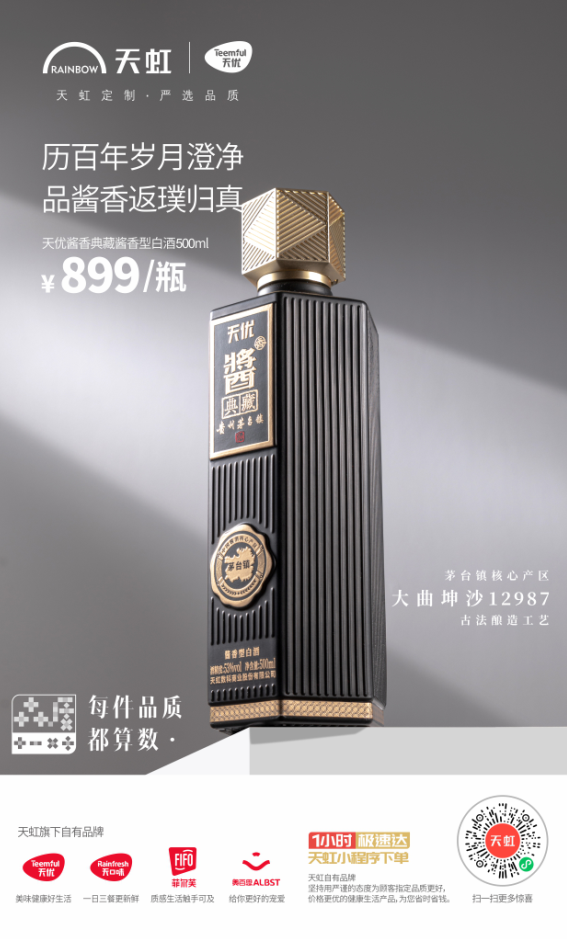 年初,天虹自有品牌“天優(yōu)”推出高品質(zhì)醬香白酒,成為零售行業(yè)自有品牌首創(chuàng)。這一舉動引起了業(yè)內(nèi)及市場的強烈反響。天虹的自有品牌也被消費者們更廣泛的悉知。