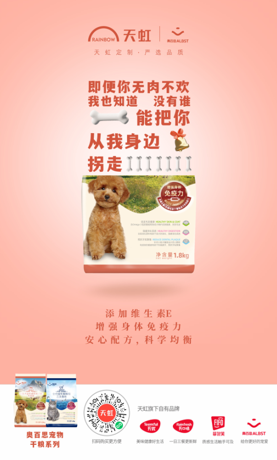 奧百思寵物系列產(chǎn)品,天虹自有品牌團隊對標行業(yè)高端品牌,與專業(yè)機構(gòu)就配方和成分進行反復(fù)調(diào)配,最重要的蛋白質(zhì)含量定在高于對標品3%以上,在商品開發(fā)期間,天虹還邀約顧客帶愛寵進行盲測,以調(diào)試出最佳口感,給到“毛孩子”們更好的寵愛。