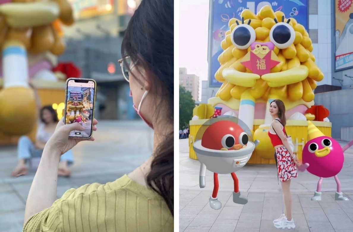 位于凱德虹口正門廣場(chǎng)上,巨大的KAKA雕像給大家?guī)?lái)不少驚喜。可根據(jù)提示板上的操作信息,用手機(jī)拍攝掃描kaka雕像,激萌的凱德虹口吉祥物——因吹斯汀家族集體歡樂(lè)現(xiàn)身,可愛(ài)又神奇的AR效果瞬間引爆競(jìng)相合照熱潮,迅速成為熱鬧非凡的爆款打卡點(diǎn)。