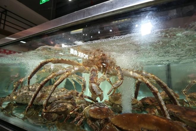 來自中國海鮮之都威海的各種海產(chǎn)品,以及帝王蟹、珍寶蟹、波士頓龍蝦等世界各地海產(chǎn),通過全程冷鏈系統(tǒng)直達(dá)門店。