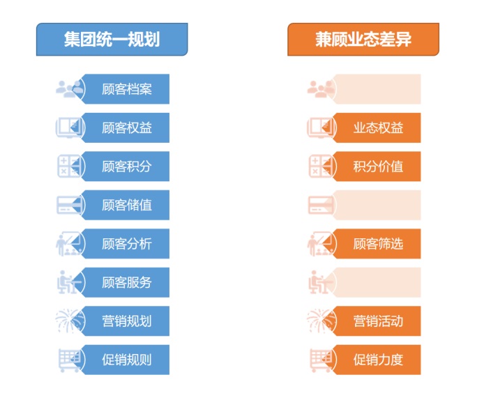 完成集團(tuán)內(nèi)大賣場、百貨店、社區(qū)超市、便利店、家居建材賣場、購物中心、奧特萊斯、分銷代理等各業(yè)態(tài)、各品牌的會員體系的整合。一方面,實(shí)現(xiàn)跨業(yè)態(tài)、跨渠道會員身份共享、業(yè)態(tài)間權(quán)益引流。另一方面,在會員權(quán)益、積分價(jià)值、營銷活動設(shè)置等方面兼顧各業(yè)態(tài)特點(diǎn)差異。在為顧客帶來更加流暢、便捷體驗(yàn)的同時(shí),通過更為豐富、準(zhǔn)確的大數(shù)據(jù)采集,進(jìn)行顧客精準(zhǔn)畫像,通過深度洞察與精細(xì)運(yùn)營,實(shí)現(xiàn)顧客全生命周期管理,更好的服務(wù)于消費(fèi)者。