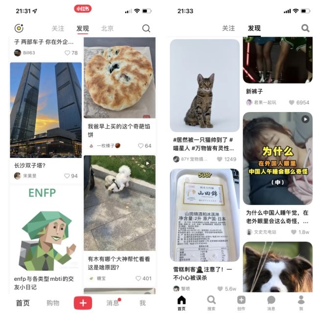 左為小紅書(shū),右為可頌