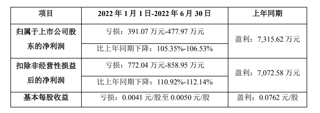 在剛剛披露的2022半年度業(yè)績報告中,實現(xiàn)歸屬于上市公司股東的凈利潤預計虧損3140.2萬元-3838.02萬元,相較同期下滑46.7%-56.39%?梢钥闯觯押淌称返臉I(yè)績預測,在不斷地“變臉”。