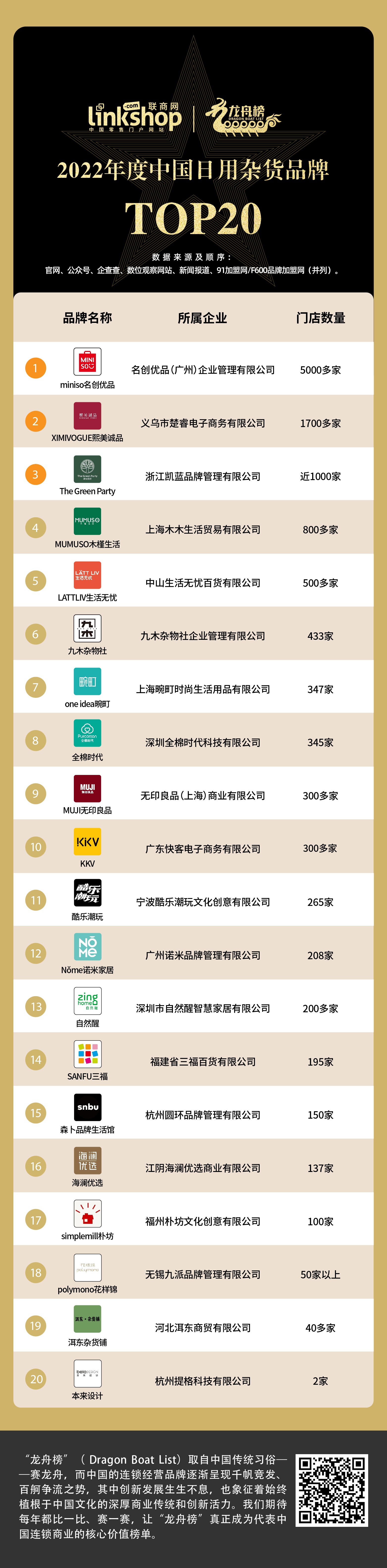 本期,《聯(lián)商網(wǎng)》特別推出龍舟榜之“2022年度日用雜貨連鎖品牌TOP20”,從門店數(shù)據(jù)、消費者滿意度、融資情況等維度對日用雜貨連鎖品牌進行分析觀察,呈現(xiàn)行業(yè)發(fā)展現(xiàn)狀,展望未來發(fā)展趨勢。