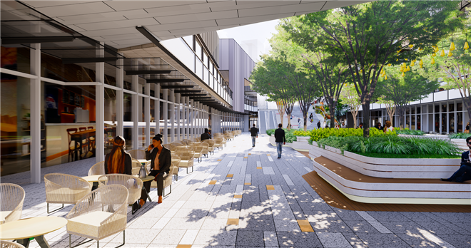 在戶外擁有開闊廣場和草坪景觀的「萬坊」(休閑餐飲社交街區(qū))及「萬境廣場」(室外多樣綠植空間),以休閑外擺餐飲打造放松愜意氛圍,可打造草坪音樂節(jié)、周末市集等舒展生活的活動。