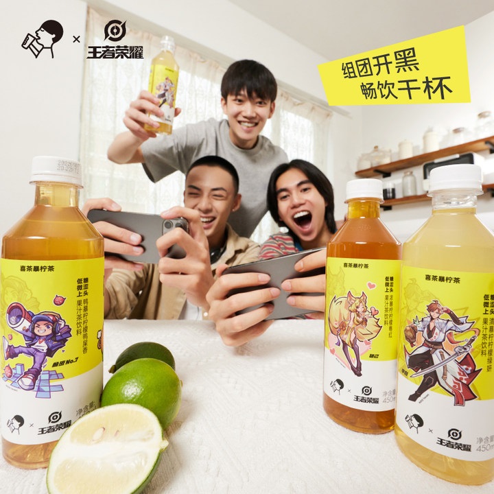 至此,喜茶瓶裝暴檸茶共包含清暴檸·檸檬綠妍、濃暴檸·檸檬粵紅、鴨暴檸·檸檬鴨屎香、以及基于本次合作的限定口味姜暴檸·檸檬姜姜、參暴檸·檸檬參參共5個口味產(chǎn)品。而相較于以既有產(chǎn)品為基礎(chǔ)更新包裝的行業(yè)主流形式,喜茶本次推出的王者榮耀授權(quán)款定制暴檸茶產(chǎn)品不僅體現(xiàn)了喜茶靈活的研發(fā)能力,也彰顯了喜茶瓶裝對話王者榮耀玩家群體、打造深度聯(lián)動體驗的誠意。