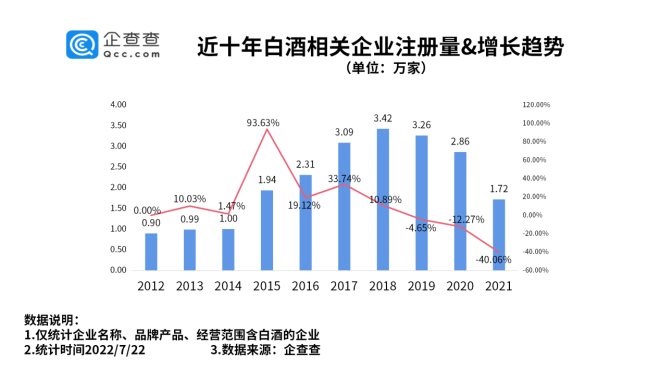 1、2021年新增白酒相關(guān)企業(yè)1.72萬家