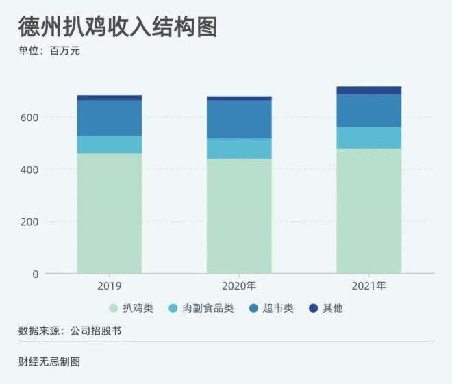 招股書顯示,近三年來,扒雞類產(chǎn)品占德州扒雞總營收比例接近七成,毛利率逐年下降。在消費(fèi)多元化的趨勢下,盈利速度放緩的扒雞類大單品無法拉動(dòng)企業(yè)實(shí)現(xiàn)更快增長。