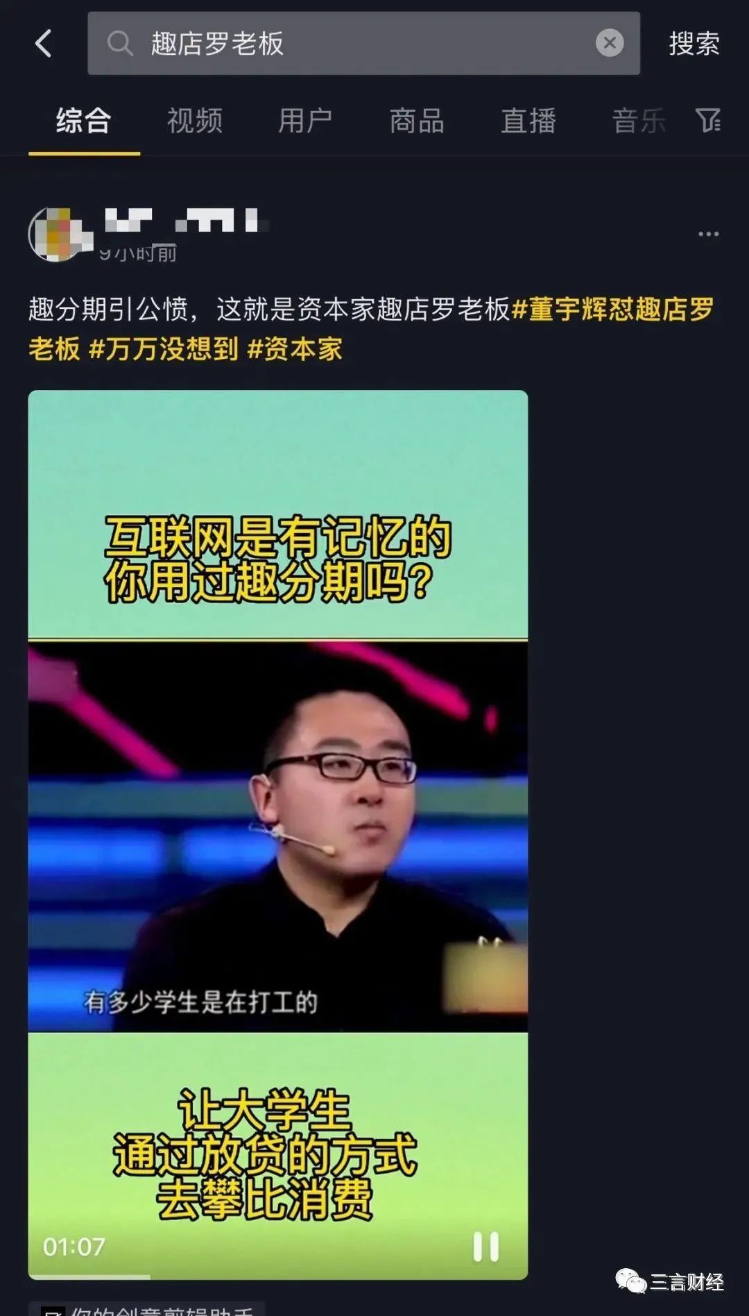 網(wǎng)友質(zhì)疑傅首爾和賈乃亮為曾搞校園貸的趣店站臺(tái),就是在合力割韭菜,掙昧心錢(qián)。