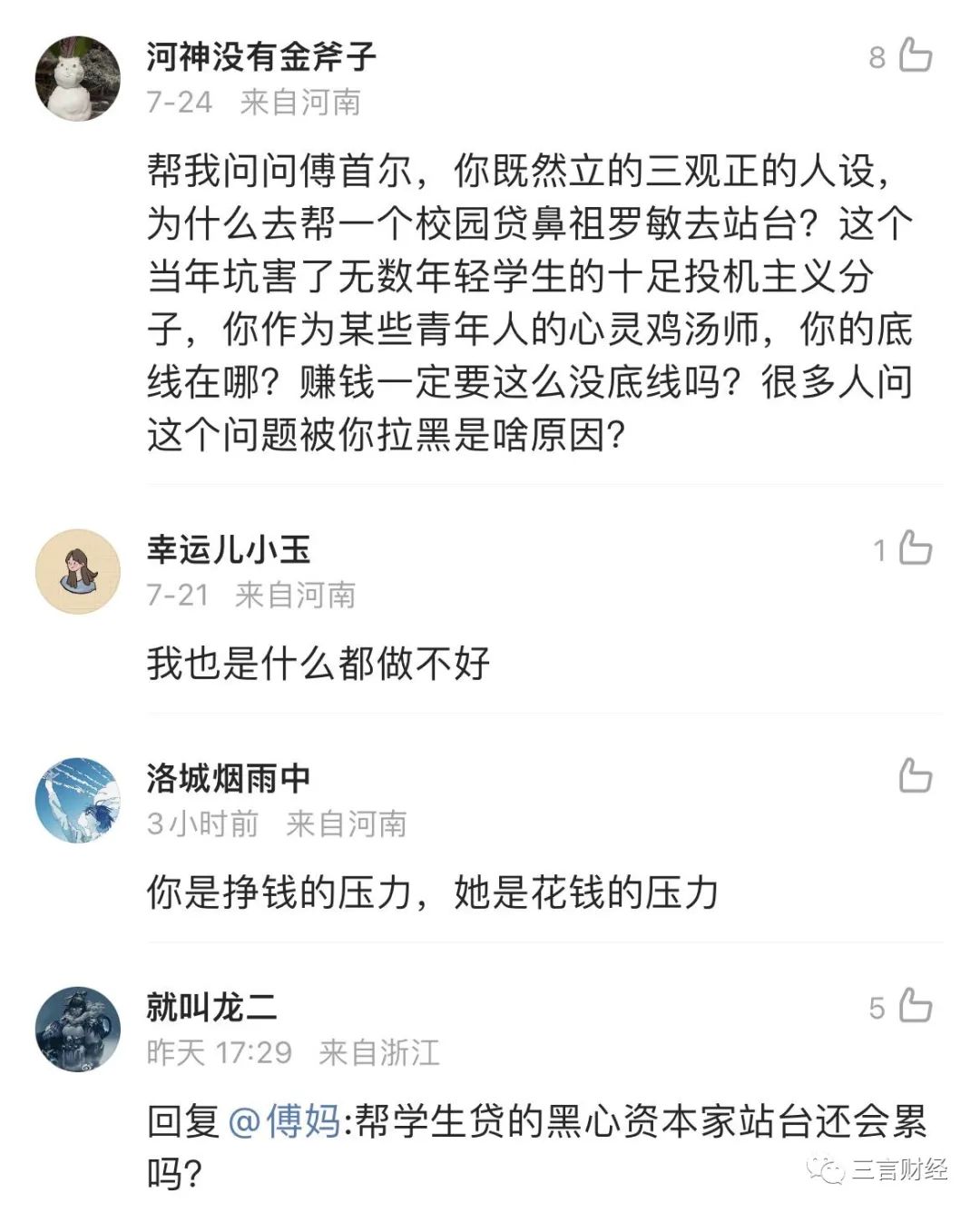 不過(guò)相比羅敏的控評(píng),這個(gè)賬號(hào)還算大度,評(píng)論靠前的都是在說(shuō)學(xué)生貸。