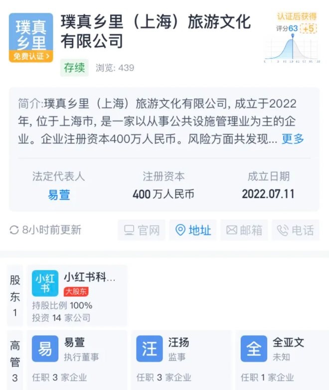 就以投資文旅行業(yè)為例,今年7月11日,小紅書又成立璞真鄉(xiāng)里(上海)旅游文化有限公司成立,向市場和行業(yè)釋放出小紅書親自下場尋求旅游變現(xiàn)的重要信號。