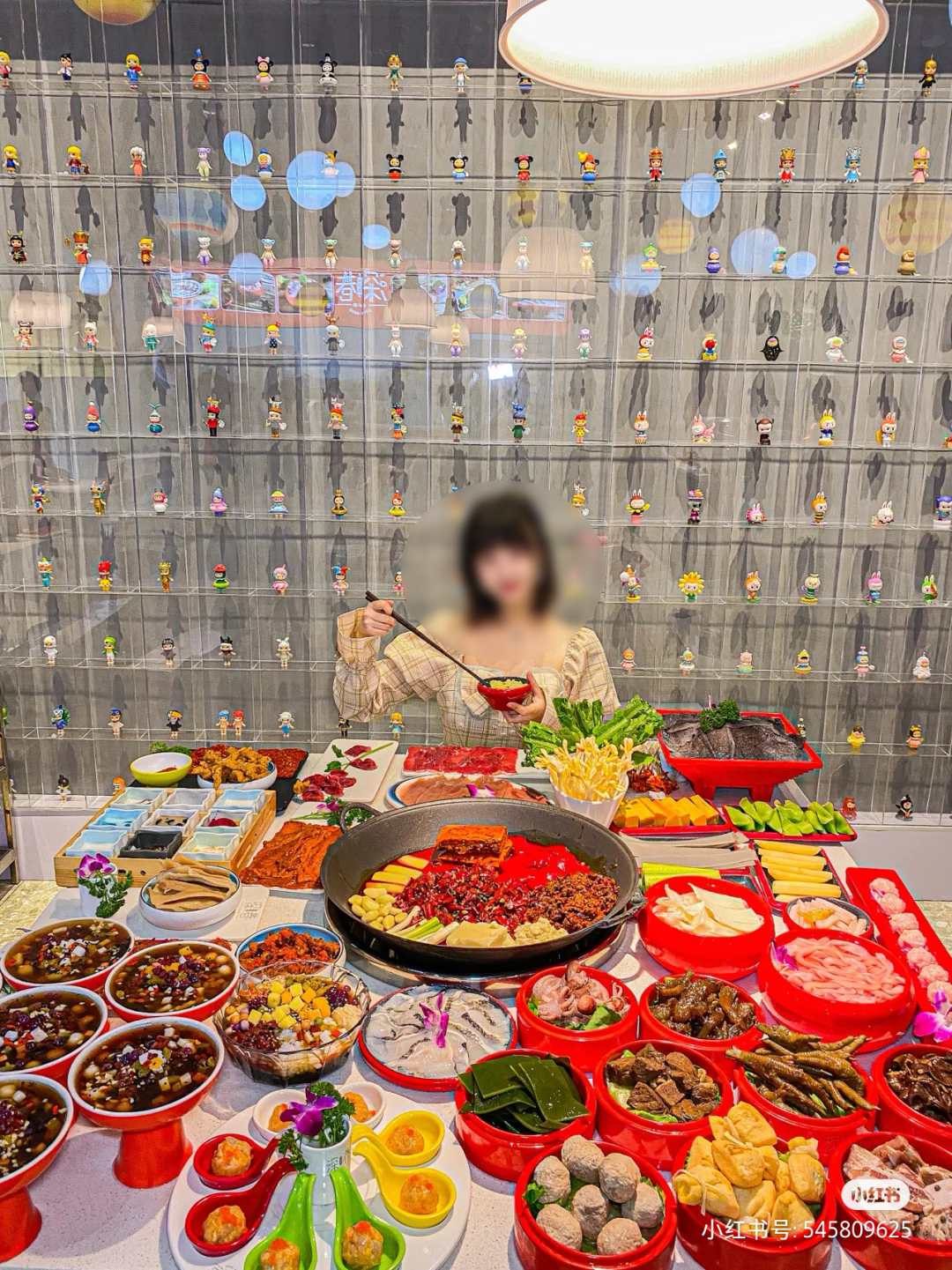 現(xiàn)在已經(jīng)出現(xiàn)了一些盲盒主題的火鍋店,比如重慶的深巷老火鍋,就將知名的泡泡瑪特玩具擺滿了整面墻壁,每桌顧客都可以免費(fèi)抽盲盒,吸引了不少年輕人打卡。