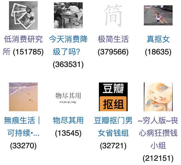 豆瓣上有各類反消費主義小組
