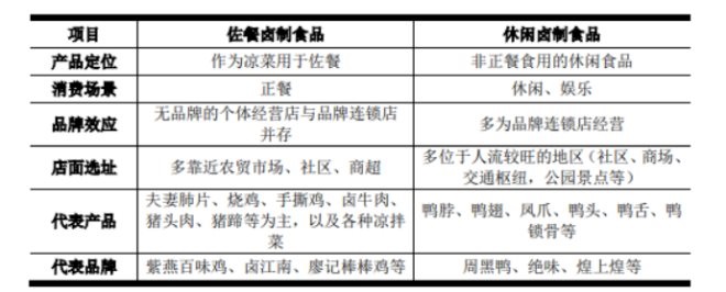 佐餐鹵制品與休閑鹵制品的差異 資料來源:紫燕食品招股說明書,36氪整理
