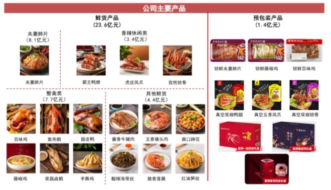 有別于鹵制品市場主流的鴨副產(chǎn)品,佐餐鹵味在食材和口感上更為豐富,主要涵蓋雞、牛、豬等肉類及素菜制品。紫燕食品的爆款產(chǎn)品夫妻肺片屬于川味名菜,由于紫燕百味雞的主市場分布在華東地區(qū),紫燕根據(jù)不同區(qū)域和市場的飲食習慣差異,通過自制配方改良了口味,以便符合當?shù)氐娘嬍澄幕,因此成為了可全國化?fù)制的大單品。紫燕食品的產(chǎn)品還包括百味雞、藤椒雞、甜皮鴨等整禽類產(chǎn)品,也兼具了甜、咸、辣等多種口味,以便消費者挑選適合的“下酒菜”。