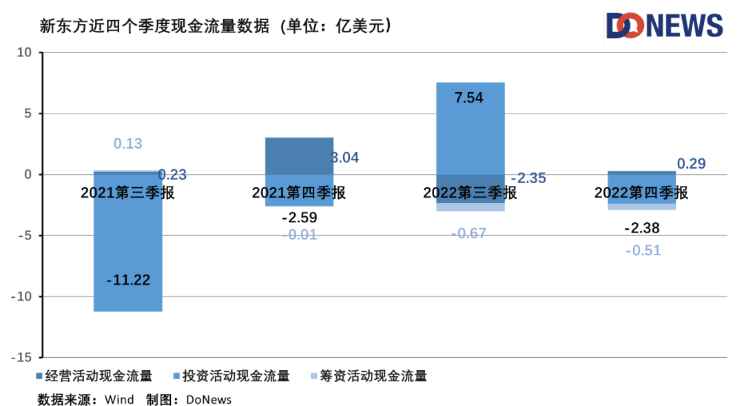 財(cái)報(bào)中,新東方CFO楊志輝指出,截至本財(cái)報(bào)季度末,新東方公司的現(xiàn)金及現(xiàn)金等價(jià)物、定期存款和短期投資合計(jì)金額為42億美元。從現(xiàn)金流變化來(lái)看,新東方最艱難的時(shí)候的確已經(jīng)過(guò)去。