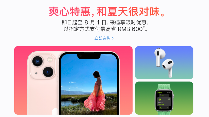 值得一提的是,蘋果今年對(duì)于“價(jià)格戰(zhàn)”的參與熱情空前高漲。從7月29日開始蘋果已經(jīng)開始了為期4天的夏日打折活動(dòng),最高優(yōu)惠達(dá)到了600元。