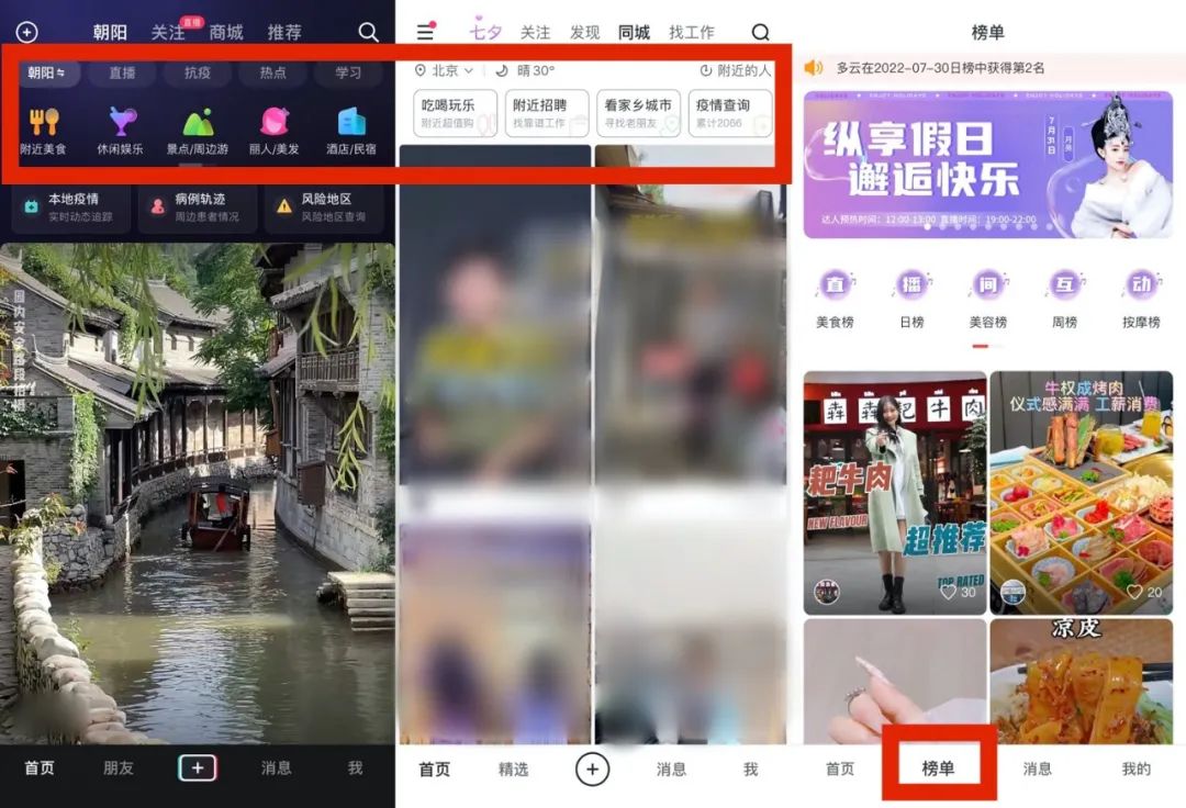 而紙鳶App,則在線下門(mén)店和線上用戶的互動(dòng)、粘性方面深耕,左手抓內(nèi)容、娛樂(lè)和社交,右手抓本地生活服務(wù)。抖音和快手均將本地生活業(yè)務(wù)入口置于首頁(yè)本地欄內(nèi)的一個(gè)小版塊中,屬于二級(jí)頁(yè)面;而紙鳶App的本地生活專(zhuān)區(qū)“榜單”,為一級(jí)頁(yè)面。