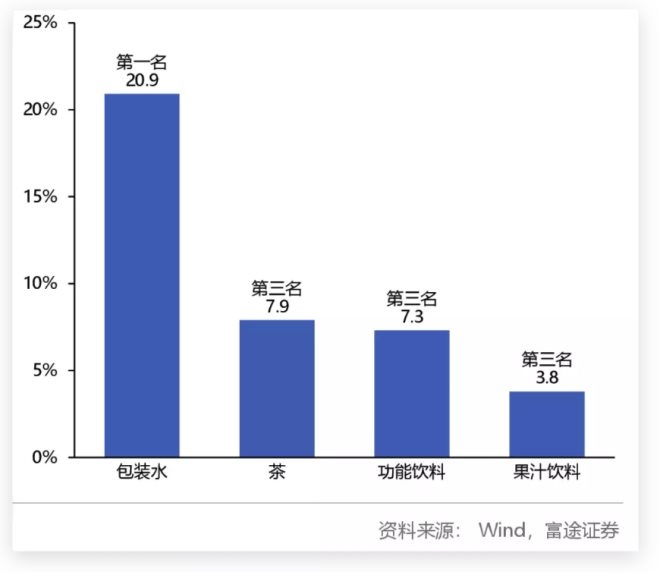 △農(nóng)夫山泉旗下品類和市場占有率(2019年)