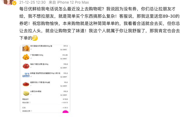 圖:消費(fèi)者在網(wǎng)上對(duì)每日優(yōu)鮮的吐槽