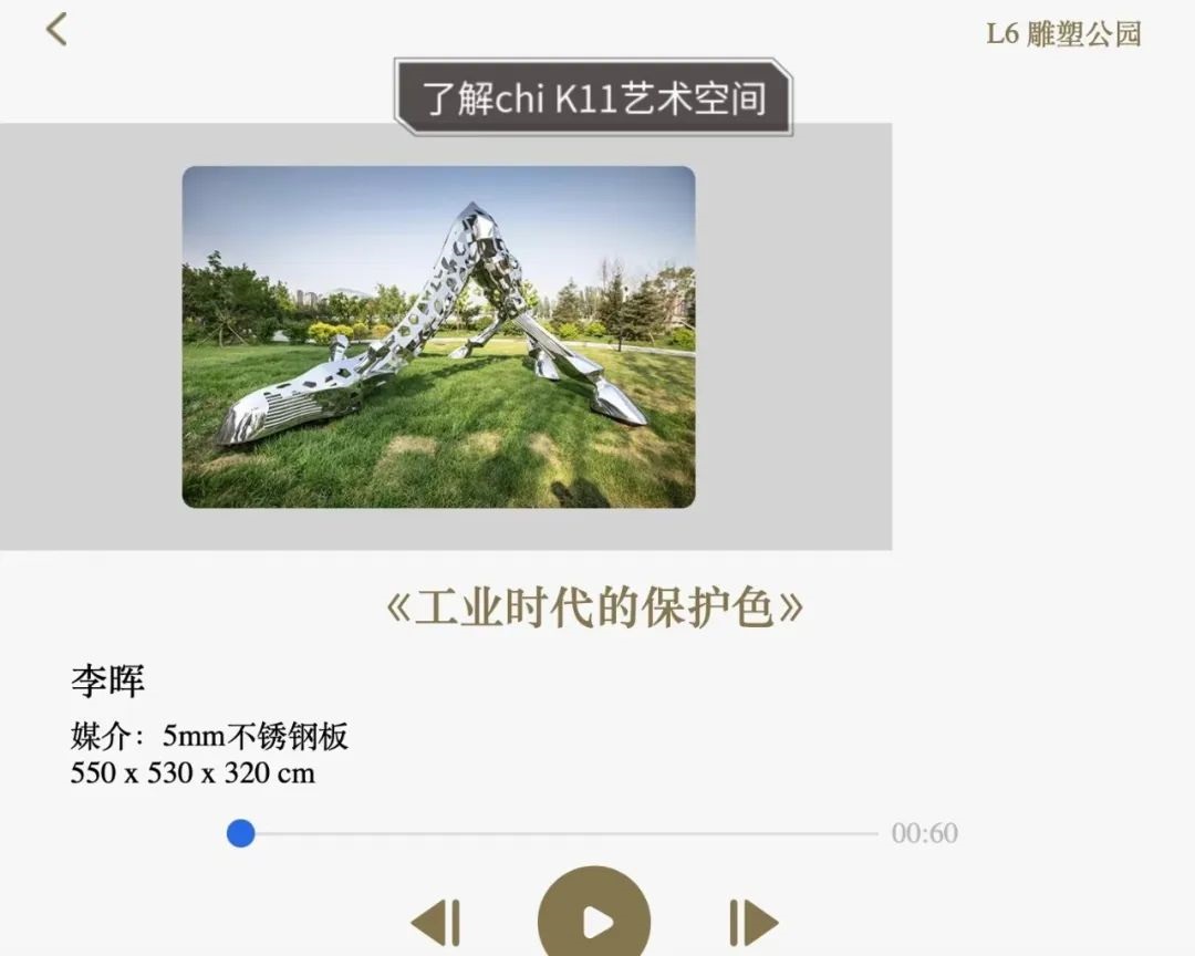 沈陽K11場內(nèi)場外共有33件本地及海外藝術(shù)名作,分布在B1-L6層(雕塑公園)以及室外,觀眾可通過語音導(dǎo)覽系統(tǒng)了解作品背后的創(chuàng)作故事。