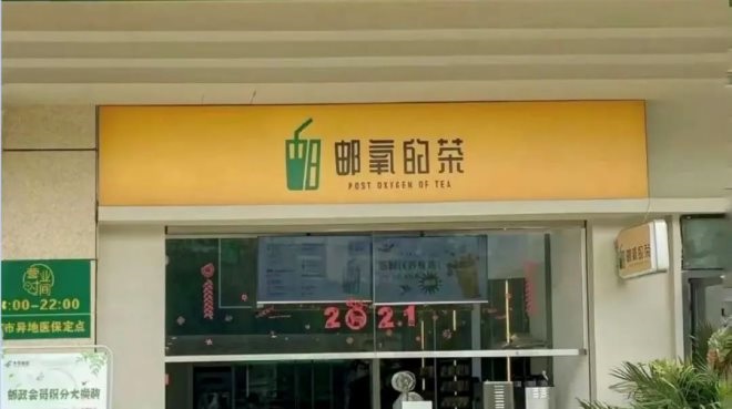 彼時,#中國郵政成立奶茶店#相關(guān)話題登上熱搜。一福建福州市網(wǎng)友爆料,自己家樓下郵政大藥房一家名為「郵氧的茶」的奶茶店下悄悄開張,店面設(shè)計和產(chǎn)品包裝袋都以“中國郵政”經(jīng)典的黃綠色簡約風呈現(xiàn)。