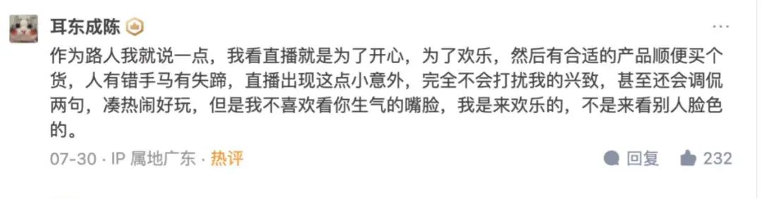 贊賞她的人說她是“性格直爽”“講究原則、決不妥協(xié)”,不喜歡她的人認(rèn)為董明珠“兇、發(fā)火、硬懟、手撕”。就比如直播間憤怒離場(chǎng)事件,有人支持董明珠,“讓老板在這里等?讓別人怎么想他們的產(chǎn)品”,有人稱“窒息感很強(qiáng)了”,一位@耳東成陳的網(wǎng)友表示,“我看直播就是為了開心,為了歡樂,直播出現(xiàn)這點(diǎn)小意外,完全不會(huì)打擾我的興致,但是我不喜歡看你生氣的嘴臉,我是來歡樂的,不是來看別人臉色的!