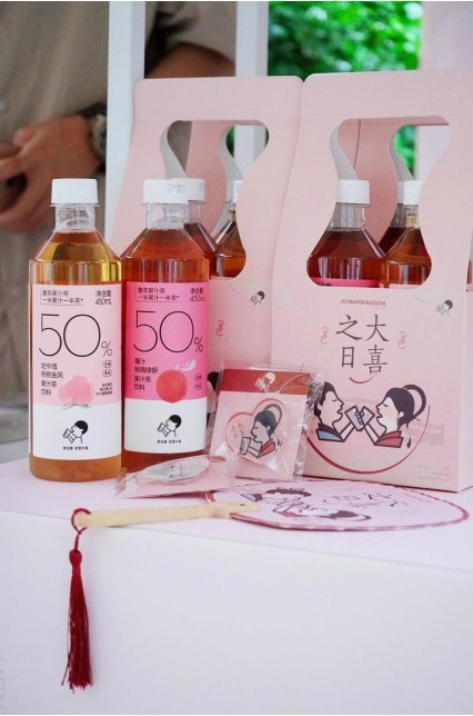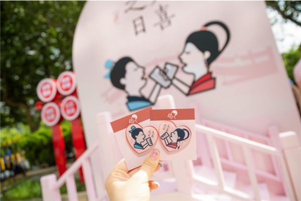 為了讓新人“喜上加喜”,感受濃厚的傳統(tǒng)七夕節(jié)氛圍,喜茶聯(lián)合杭州、重慶、廣州、武漢、青島5個城市的民政部門推出“七夕節(jié)送喜”活動,不僅在活動現(xiàn)場搭建了歡喜鵲橋、七囍花車,還為當天到民政部門辦理結婚登記的新人免費送出喜茶爆汁楊梅綠妍果汁茶、地中海桃桃金鳳果汁茶,以及七夕限定扇子和徽章禮品,令不少到場的新人驚喜不已。
