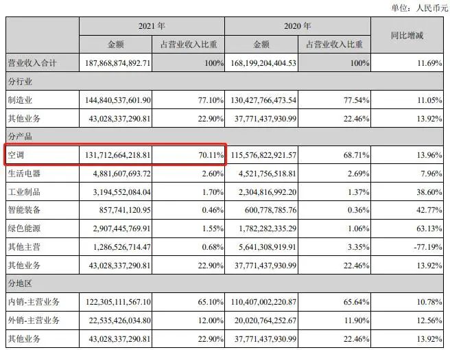 格力2021年?duì)I業(yè)收入與構(gòu)成