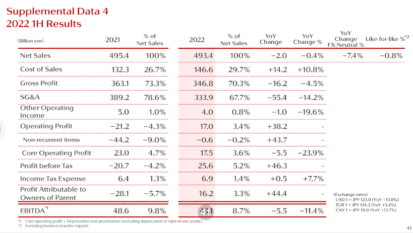 正如財報中所說,當前“WIN 2023計劃”處于逆風狀態(tài),一方面是中國、日本的市場復蘇延遲,另外一方面是能源價格上漲、全球通貨膨脹所帶來的市場環(huán)境的劇烈變化。