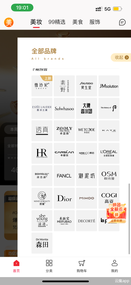 社交電商云集App的開屏語又換了。北京商報記者瀏覽發(fā)現(xiàn),云集上線了全新的slogan“上云集,美妝大牌3折起”,替代了“爆款美食上云集”。在首頁C位“本周特賣”欄目中,除了蘭蔻、海藍之謎、聯(lián)合利華等國際知名品牌之外,素野、P&S這類自有品牌也占有一席之地。