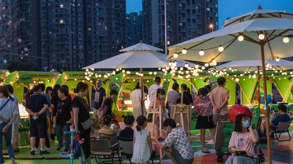 一個(gè)周六的夜晚,成都西宸天街上的一場(chǎng)夏日派對(duì)正在接近尾聲,參與派對(duì)的人來自附近,打扮前衛(wèi)的時(shí)尚達(dá)人、穿著正裝的打工人、附近遛彎的老街坊... ... 形形色色的個(gè)體,因?yàn)樘旖执蛟斓摹跋娜胀盹L(fēng)市集”而產(chǎn)生了交集。